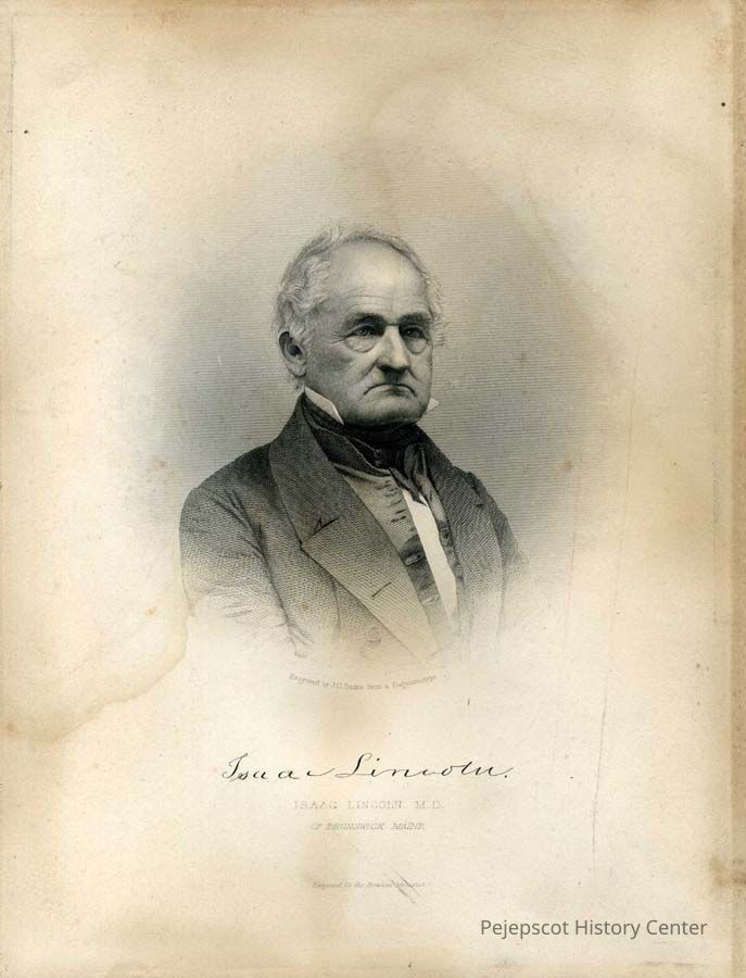 A B/W lithograph of Dr. Isaac Lincoln signed by the subject. Engraved for the Bowdoin Memorial.