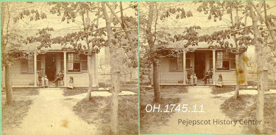 A stereo view photo of Dr. Lincoln's House on the corner of Maine and Lincoln Streets, Brunswick, ME. Not dated.