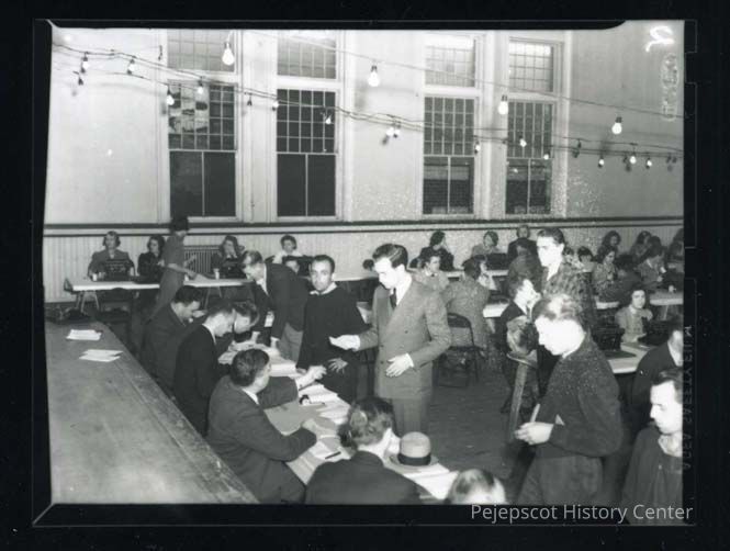 Draft registration in the Old Town Hall in 1940.