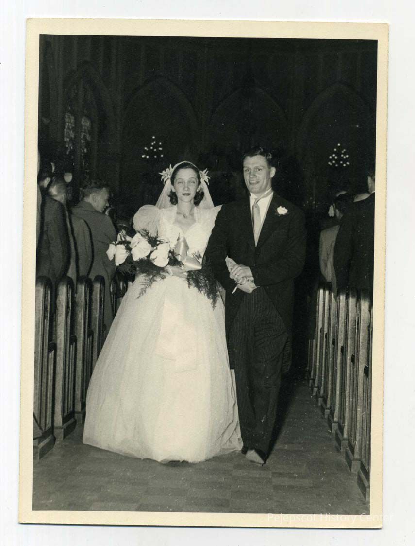 Marcelle Louise Drapeau and Henry Vincent Bonzagni at their wedding at St. John's Church. Unverified date: 04/27/1946