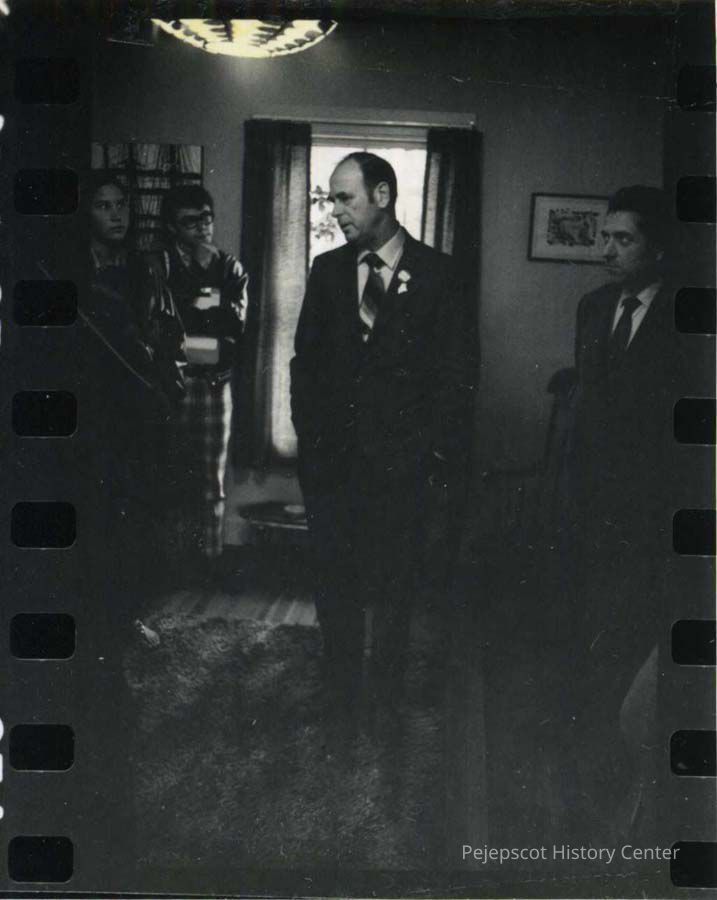 A B/W photograph of people in the Drug Abuse Center, Brunswick. Lt. Larry Joy extreme right