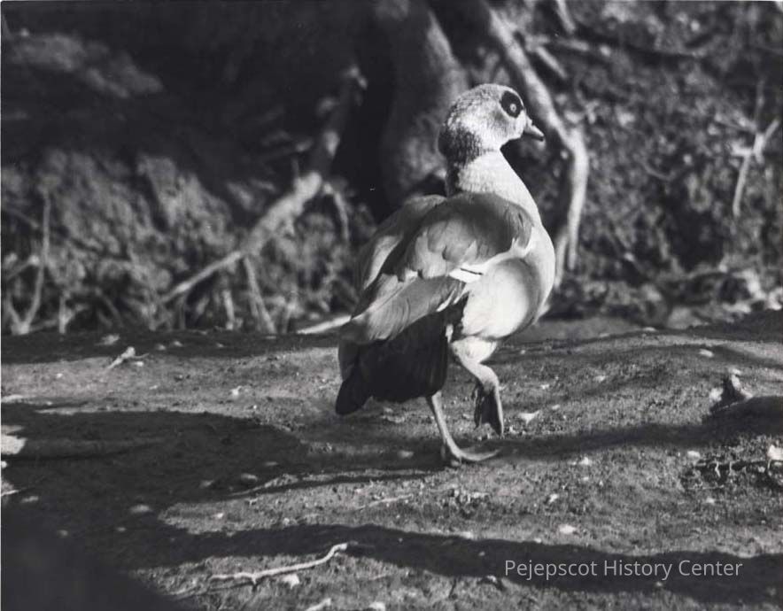 A B/W photograph of a duck at Chippy Chase Farm. Undated