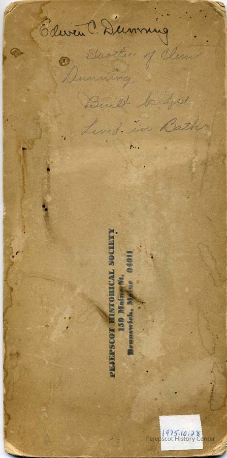 A black & white photograph of Edwin C. Dunning from Bath, ME. A note on the back reads "Brother of Clem Dunning. Built Bridges. Lived in Bath." Undated.