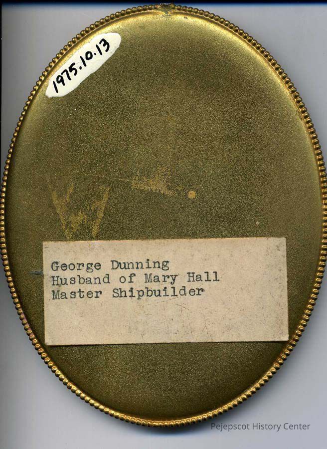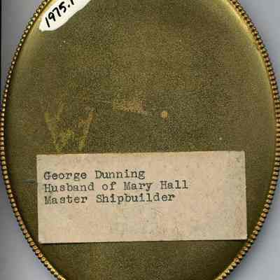 A painted photograph of George Dunning. In gold oval frame 4"x5". Back reads "George Dunning husband of Mary Hall. Master Shipbuilder." Undated.