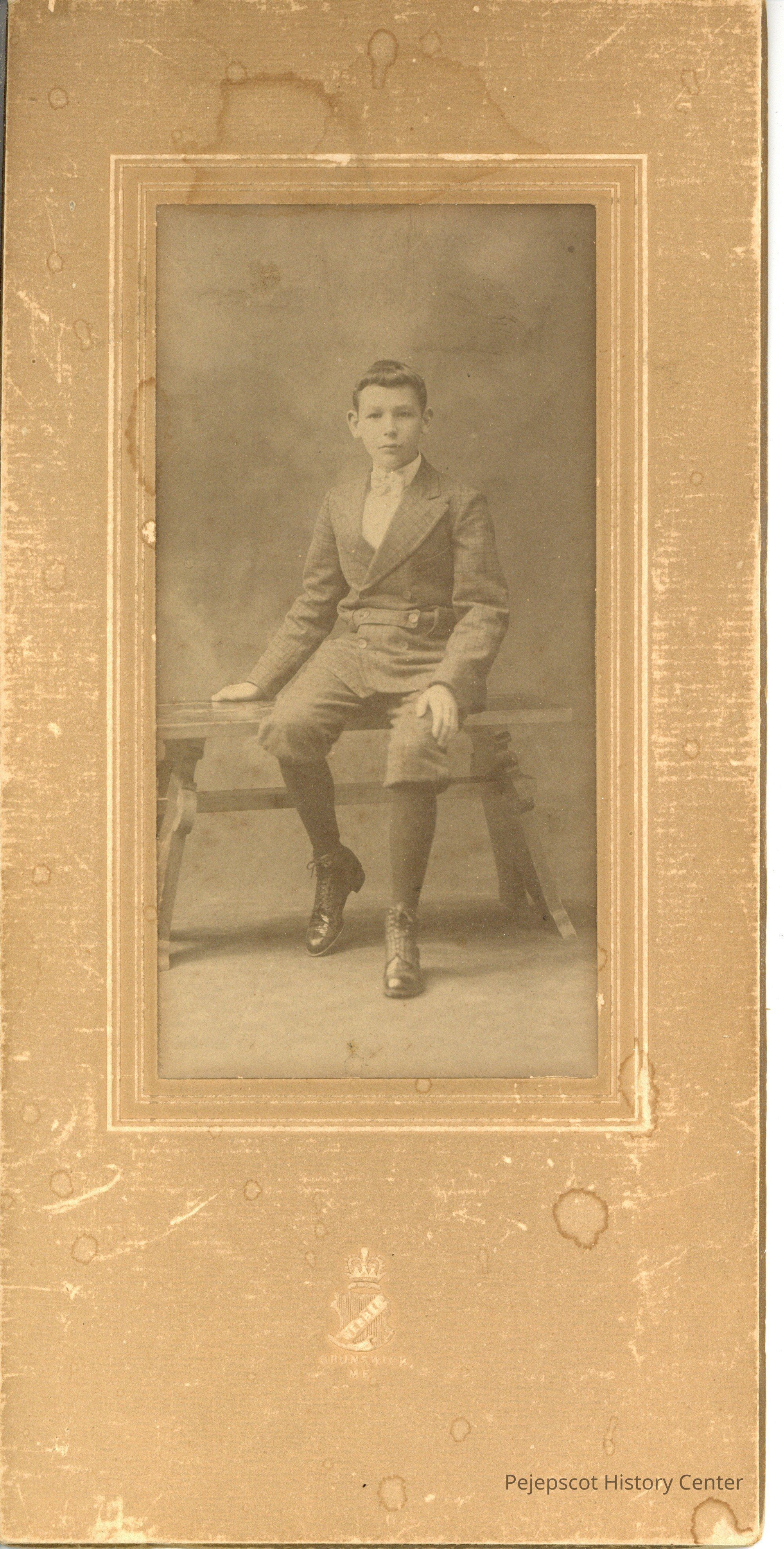 Matted studio photograph likely of Dwight Wilson Pierce at perhaps 11 or 12 years old.