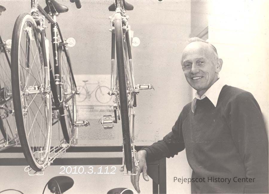 A B/W photograph of E. B. Bond owner of Brunswick Cycles, Brunswick Business Service and Vintage cars. Photo published 9/30/1976. Undated