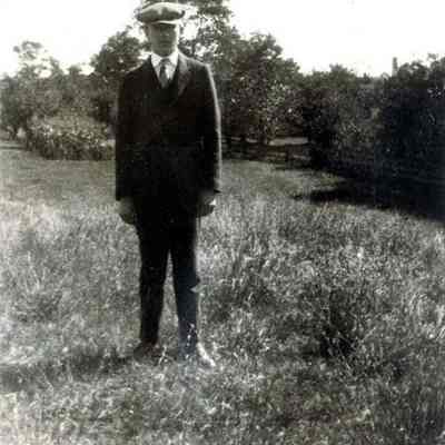 2-B/W photographs mounted on black paper (from a photo album): 1) "E. LeBlanc Co." clothing & furnishing store, Maine Street, Brunswick, circa 1935, and 2) young man with hat standing in a field (unidentified), circa 1935 (on reverse)Collection