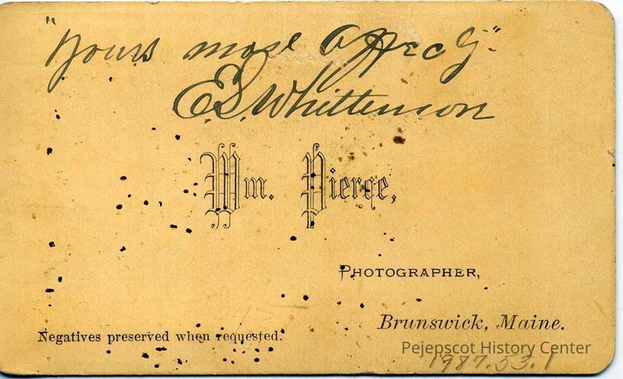 Sepia photo of E.S. Whittemore. On the front is written "Believe me ever and very affectly yours, E.S. Whittemore". Undated.