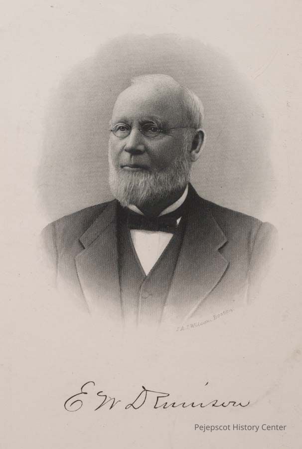 An engraving of E. W. Dennison in center of large white cardboard. Undated