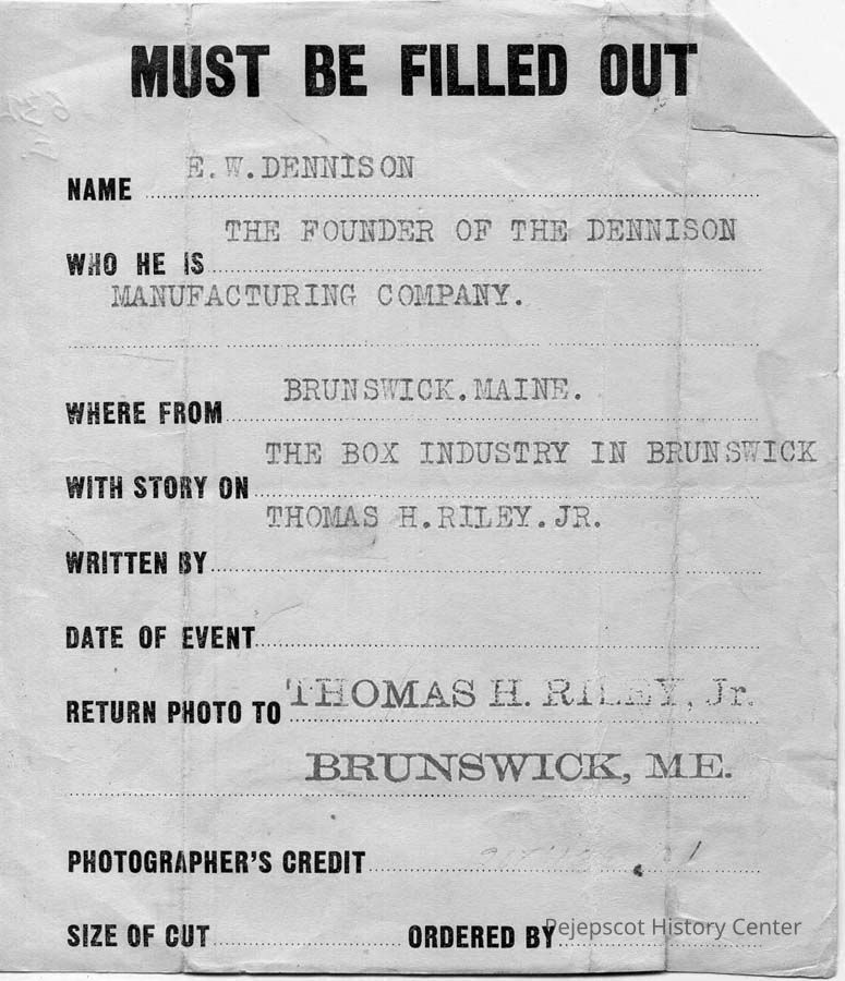 An undated B/W photograph of E. W. Dennison founder of Dennison Manufacturing Co., Brunswick, ME.