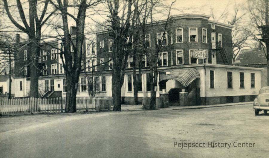 B/W postcard of Eagle Hotel, Brunswick ME. No date.