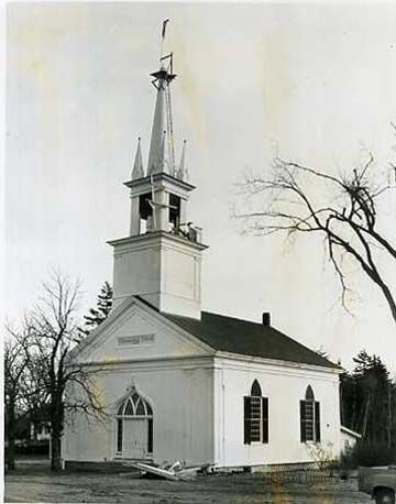A B/W photograph of Elijah Kellogg Church at Harpswell Center. Undated