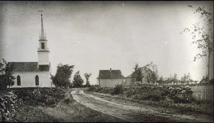 B/W print of a glass slide of the Elijah Kellogg Church, Harpswell. No date.