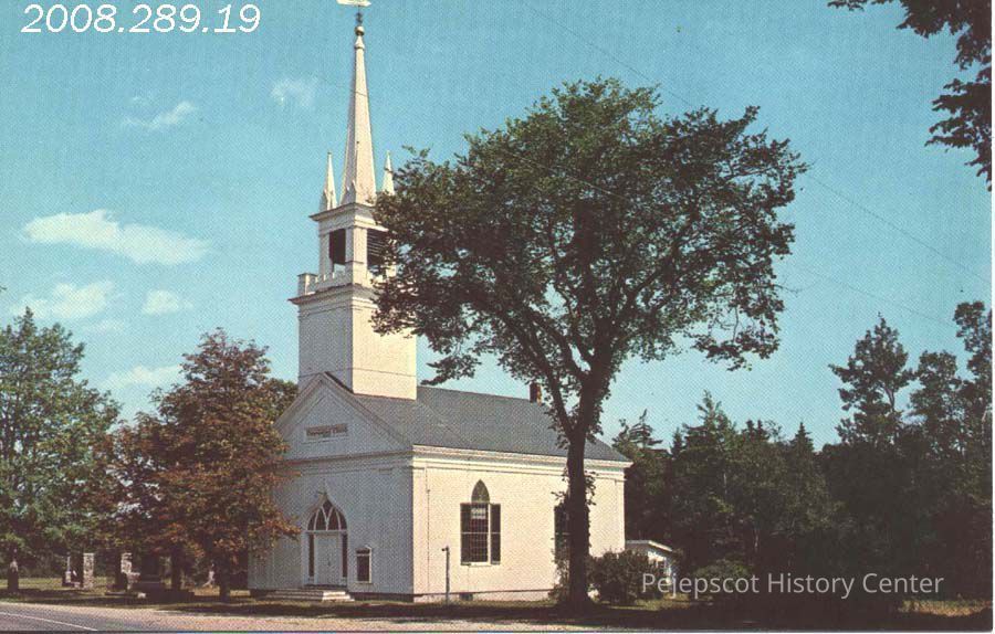 A color picture postcard of the Elijah Kellogg Church in Harpswell Center. Undated