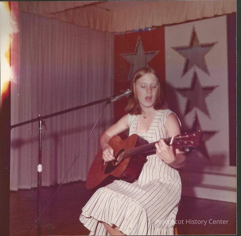 Elizabeth Coffin rehearsing her singing and playing the guitar.Entry/Object ID