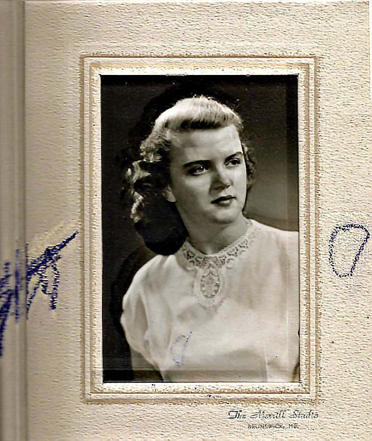 A B/W school photo of Elizabeth Crooker Baribeau BHS Class of 1948. Written on the frame, "Alice