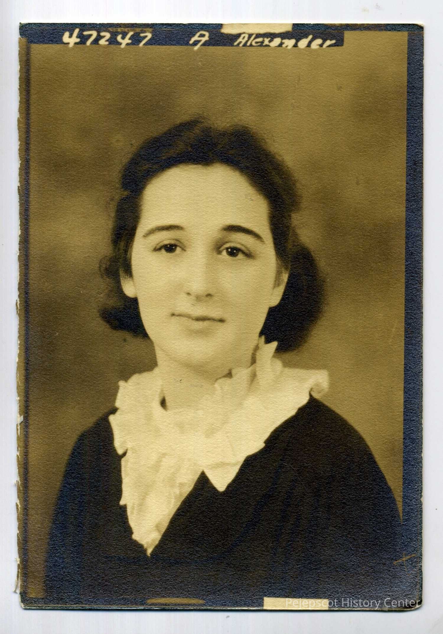 A black and white photograph of a woman identified as Ella Alexander (Stevens), BHS Class of 1937.