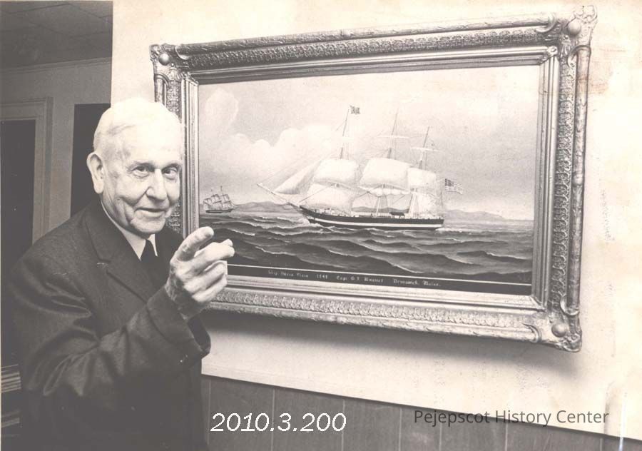 A B/W photograph of Emery W. Booker giving a lecture to the Pejepscot Historical Society on Lincoln Street. Photo published 5/22/1973. Undated