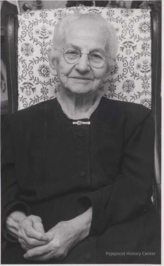 A black and white photograph of Emma Gatchell of Brunswick was published in The Brunswick Record on 1/25/1962, accompanying an article about her 97th birthday party that was held on Jan. 21.