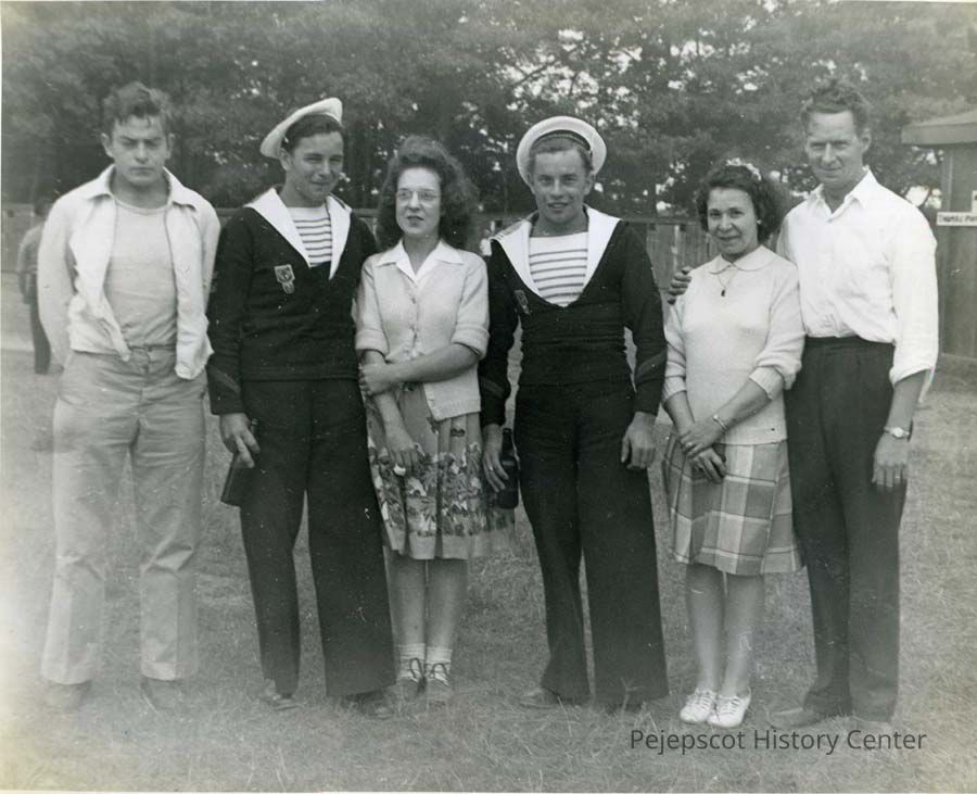 A B/W photograph of Verney Mill employees and their families at the Verney Mill picnic at Thomas Point Beach. Undated