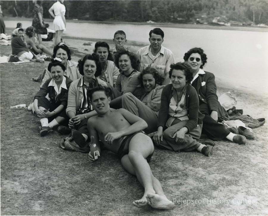 A B/W photograph of employees at the Verney Mill Picnic at Thomas Point Beach. Undated