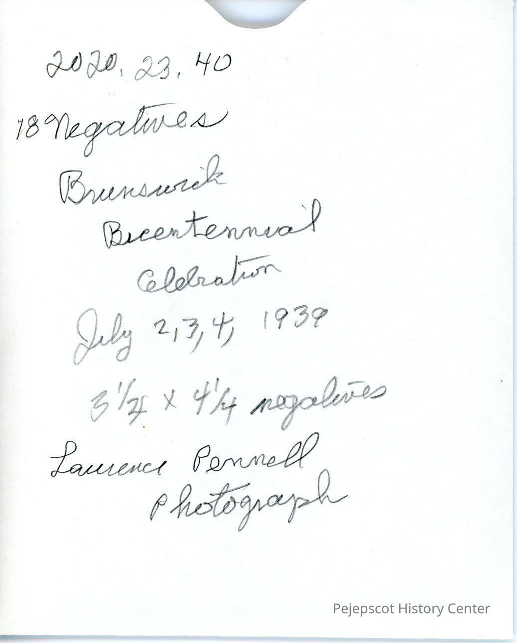 Envelope of Negatives from the Brunswick Bicentennial CelebrationEntry/Object ID