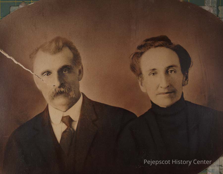 A B/W oval shaped photograph of Ernest Dionne Sr. and his first wife Julia Marse. It is a hand-colored photograph. Undated