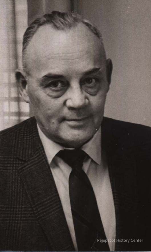 A black and white photo of Brunswick High School Band Director Ernest George appears to be cropped from a photo that was published in The Times Record in Brunswick, Maine, on 1/27/1971.