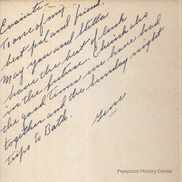 A B/W photograph of Eugene Thibeault, Brunswick High Class of 1950. He gave the photo to Evariste Bernier. Undated