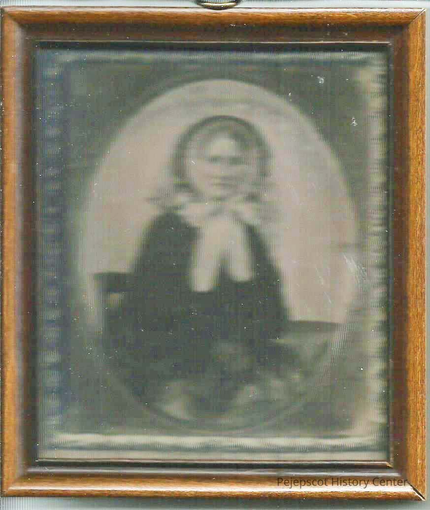 A B/W framed photograph of (written on back) "Snow Grandmother Lincott - My Mother's mother - Eunice Stanwood Howe by Bertha M. Stetson