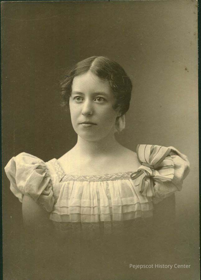 B/W photo of Evie Stetson, Brunswick High School class of 1899, Brunswick, ME. 1899.