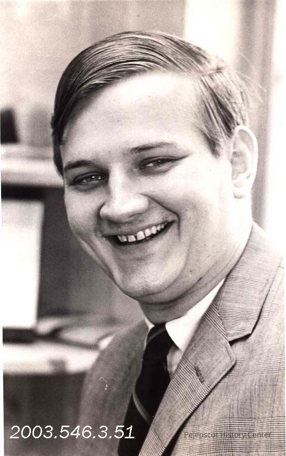 A black and white photograph of Ernie Stallworth, a reporter for The Times Record in Brunswick, Maine.