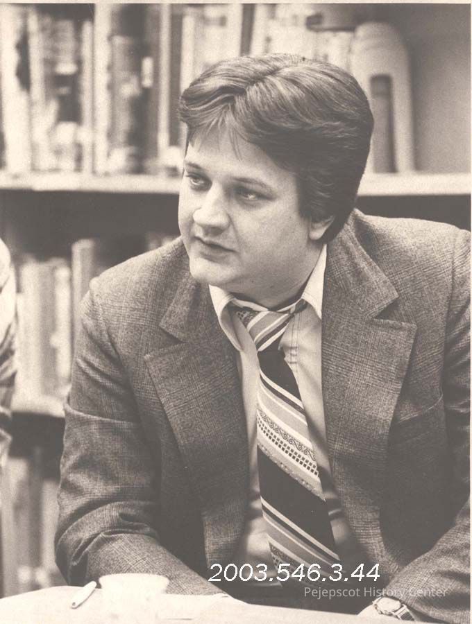 A black and white photograph of Ernie Stallworth, a reporter for The Times Record in Brunswick, Maine.