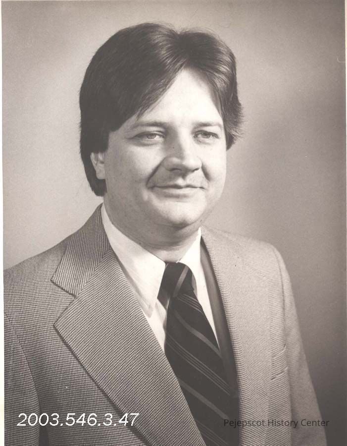 A black and white photograph of F. Ernest Stallworth, a reporter for The Times Record newspaper in Brunswick, Maine.