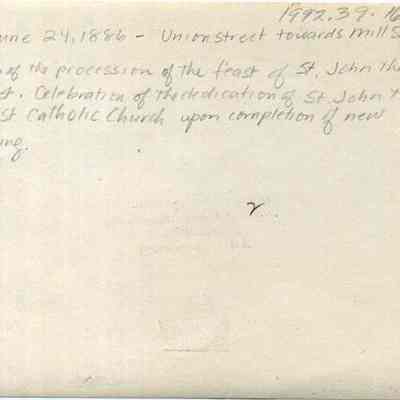Portion of the procession of the feast of St John the Baptist celebration of the dedication upon completion of new building,
