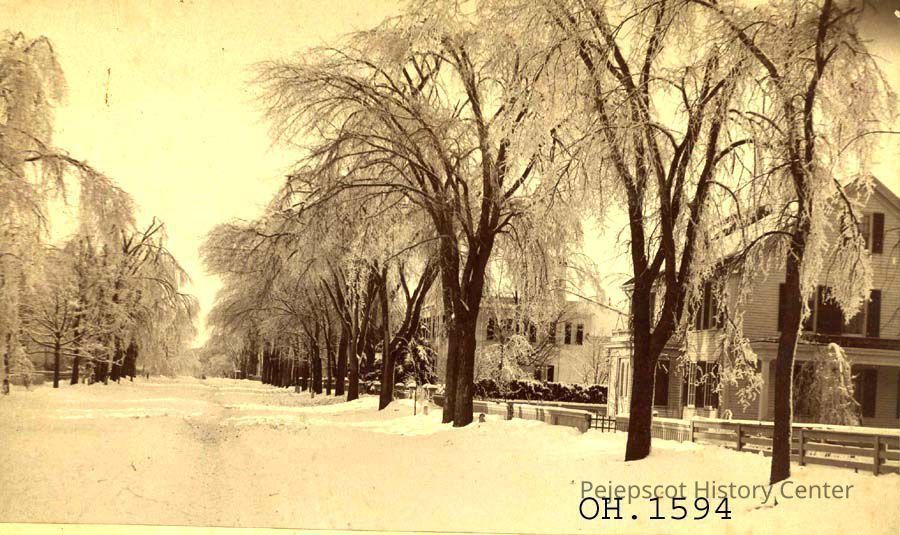 A B/W photograph of the "Upper part of Federal Street. Prof. Chapman's house, the first on the right. After ice storm." Brunswick, ME. "From Miss Edith Boardman" Not dated.