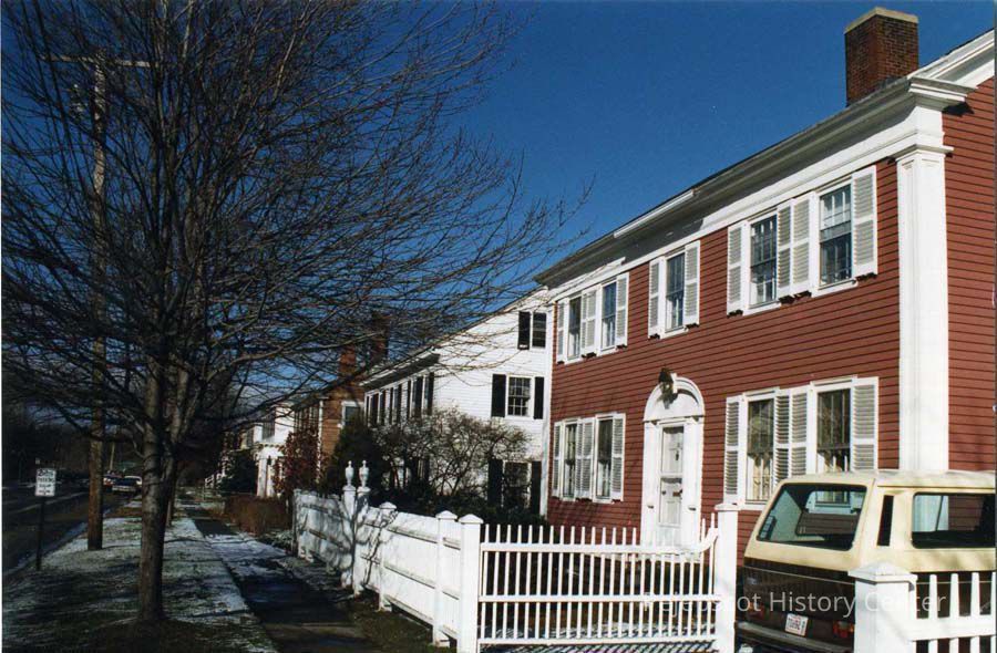 A color photo of (r - l) Nos. 13, 11, 9 and 7 Federal Street, Brunswick.