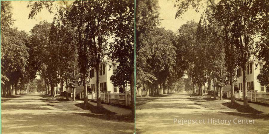 A B/W stereo photo of Federal Street, Brunswick, ME. No date.