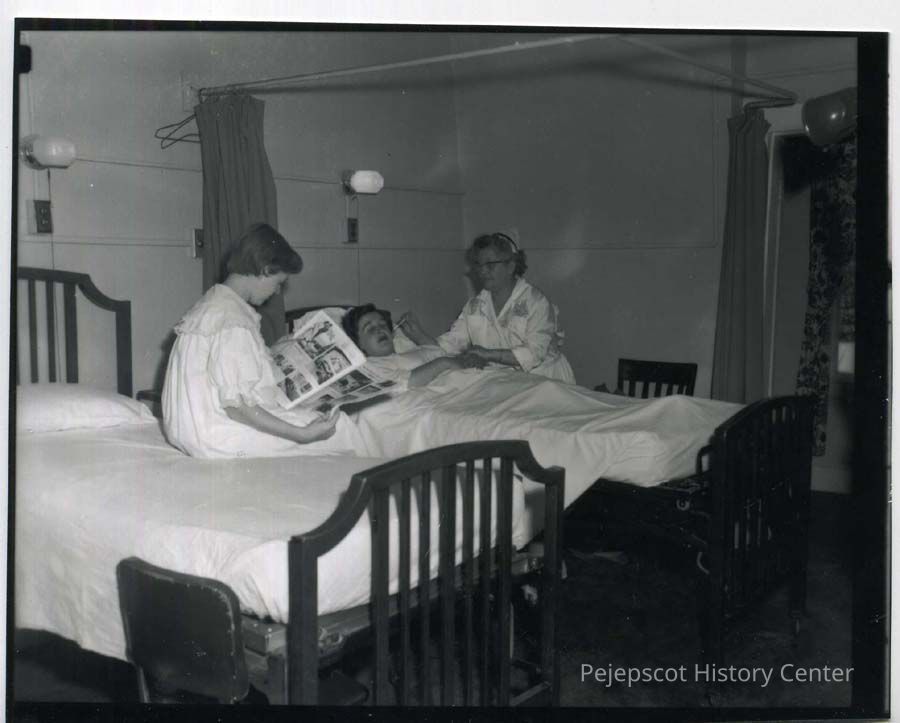 Females in a Brunswick hospital room attended by a nurse