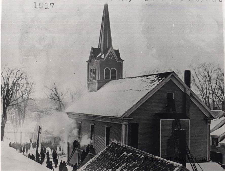 A photo of the 1917 fire at the United Methodist Church. 02/23/1917