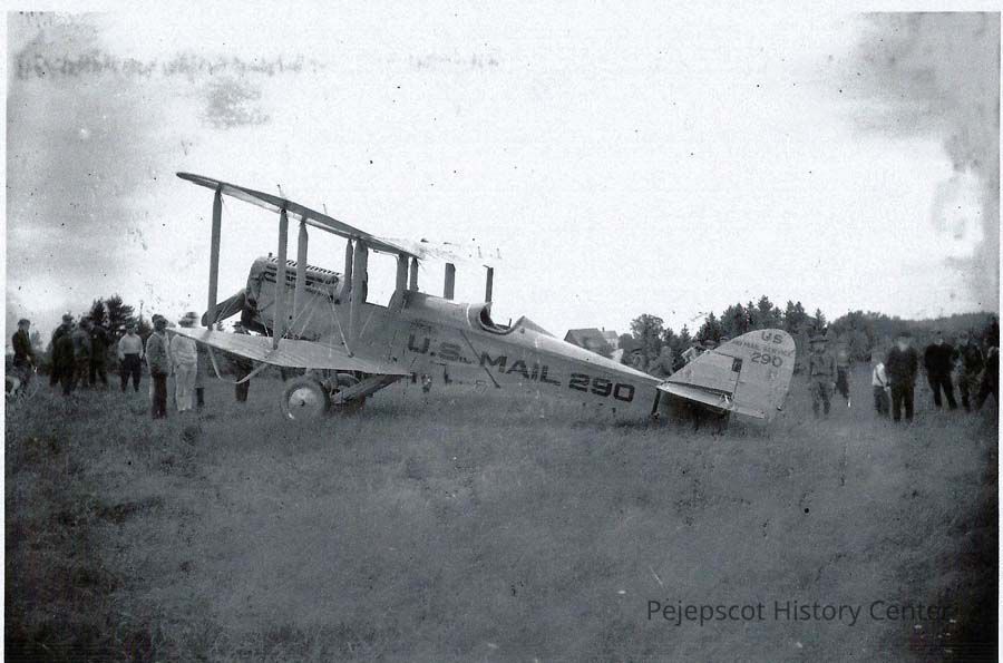 A B/W photo of the first airplane to bring U.S. mail to Brunswick. 6/12/1922