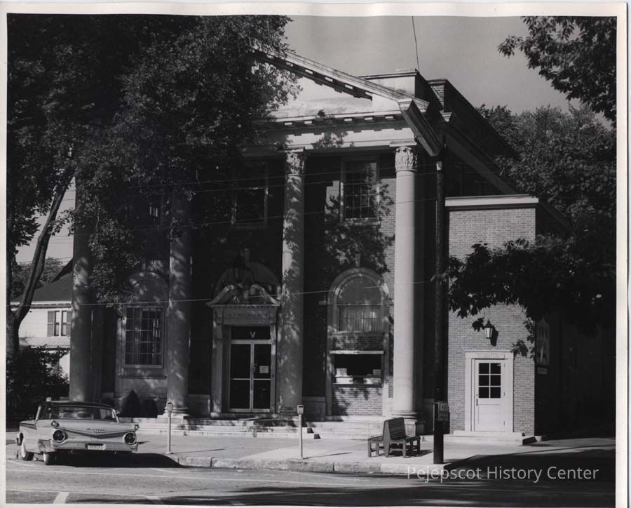 Photo of First National Bank, Maine Street, Brunswick, 1950s.