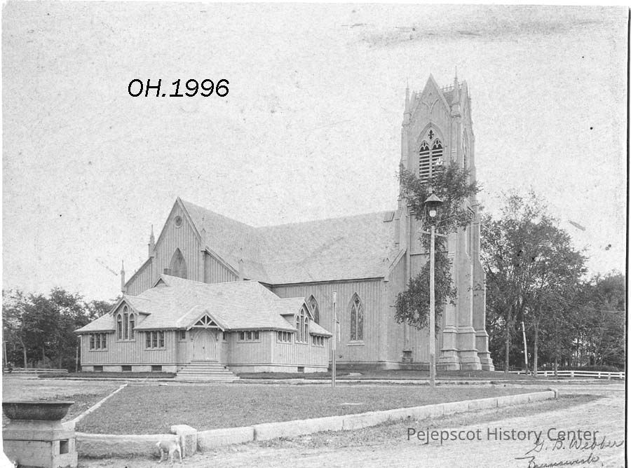 A B/W photograph of the First Parish Church, Brunswick, ME. Ca 1891-92.