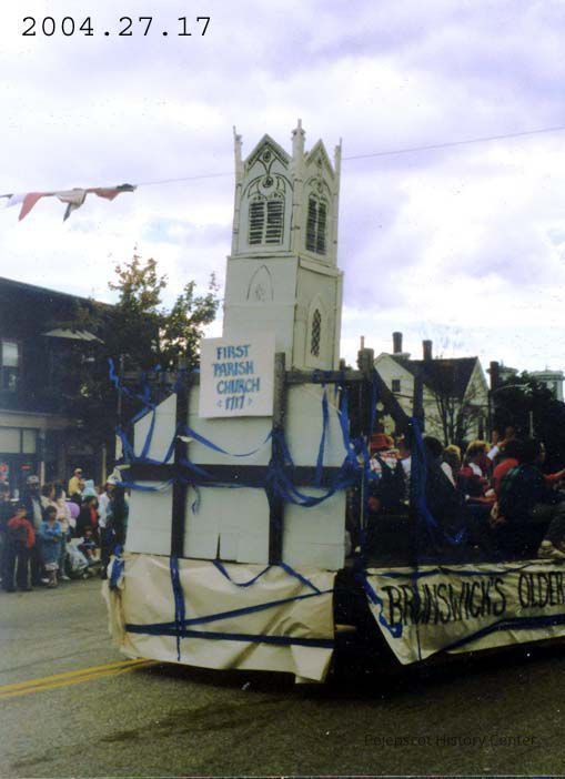 Brunswick, 250th Anniversary - Brunswick, Parades, 250th Anniversary Parade, Float, First Parish Church, First Parish Church float
