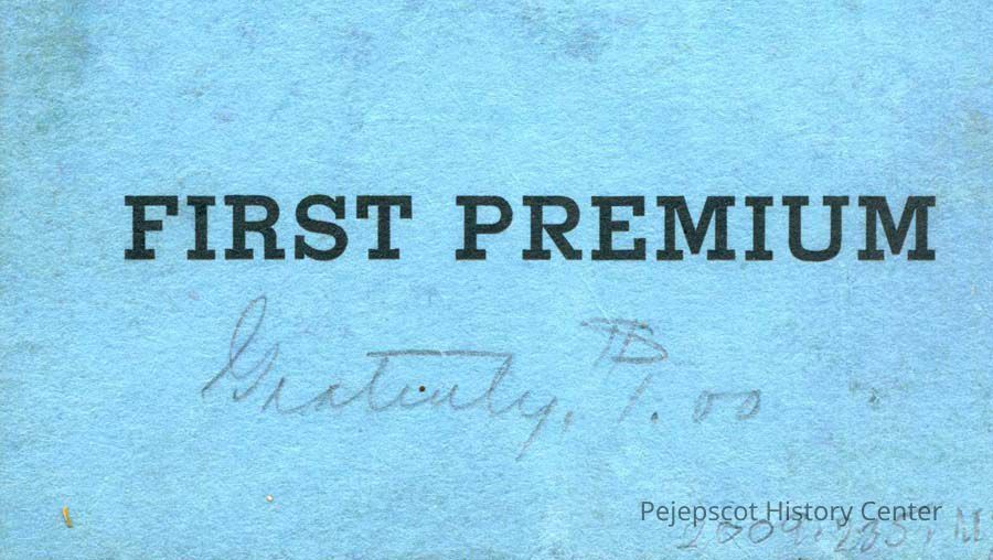 A B/W photo of an award certificate marked, "First Premium". Written on it, "Gratuity $1.00".