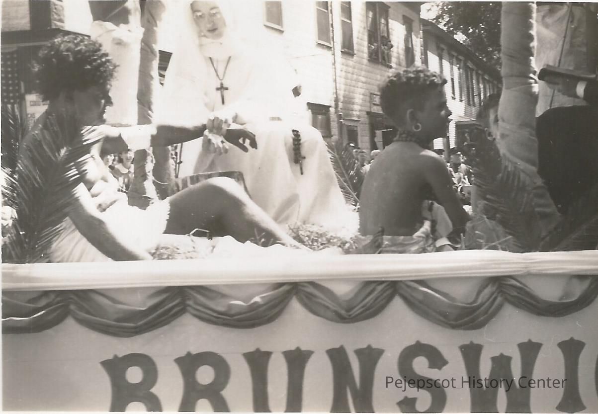 A B/W photo of a float in Brunswick's 200th Anniversary parade. Undated