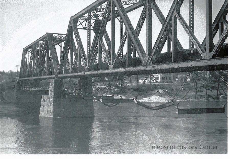 A B/W photo of the Black Bridge after the 1936 flood. 04/05/1936