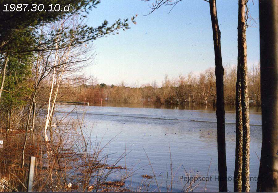 A color photograph looking at the highway from the Brunswick sewer district; 800amThursday, April 2, 1987. Brunswick, Maine. Flood of 1987