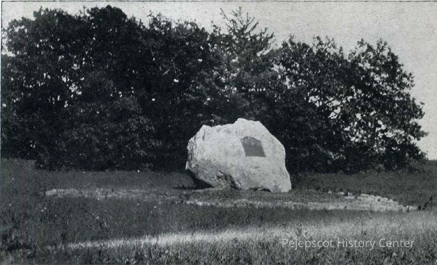 An undated black and white postcard of the memorial at Mere Point in Brunswick, Maine, for the "First Around the World Flyers."Collection