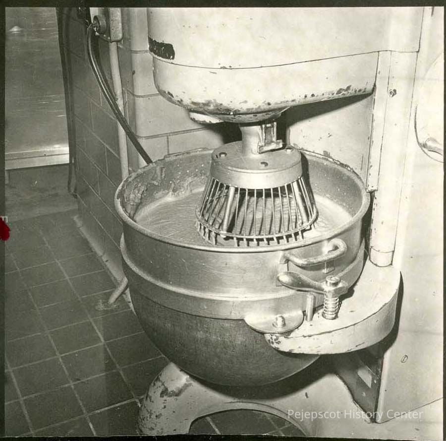 A B/W photograph of food being prepared in a Navy galley. Undated